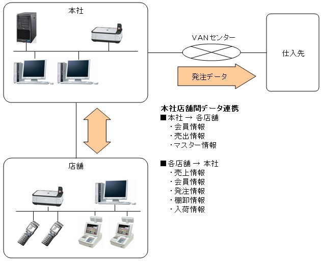 - 福岡市に本社を持ち、福岡県とその周辺地域で約40店舗を経営する小売店様にて、販売管理システム、会員管理システム、ハンディターミナルを使った商品発注、棚卸システム、POSレジとのデータ連携システムを導入しました。