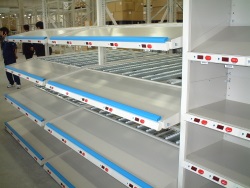 - 化粧品通販の物流センターにて、購入者向け商品をデジタルピッキングシステムで稼動させました。在庫棚からトータルピッキングを行い、その後の購入者別のピッキングをデジタル化し作業効率化と精度アップを実現しました。システムには効率化の為のたくさんの工夫が組み込まれています。詳細はお問い合わせください。