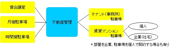 企業が社宅として借りる場合、部屋の契約を企業と、駐車場の契約を個人、のように入力も可能。